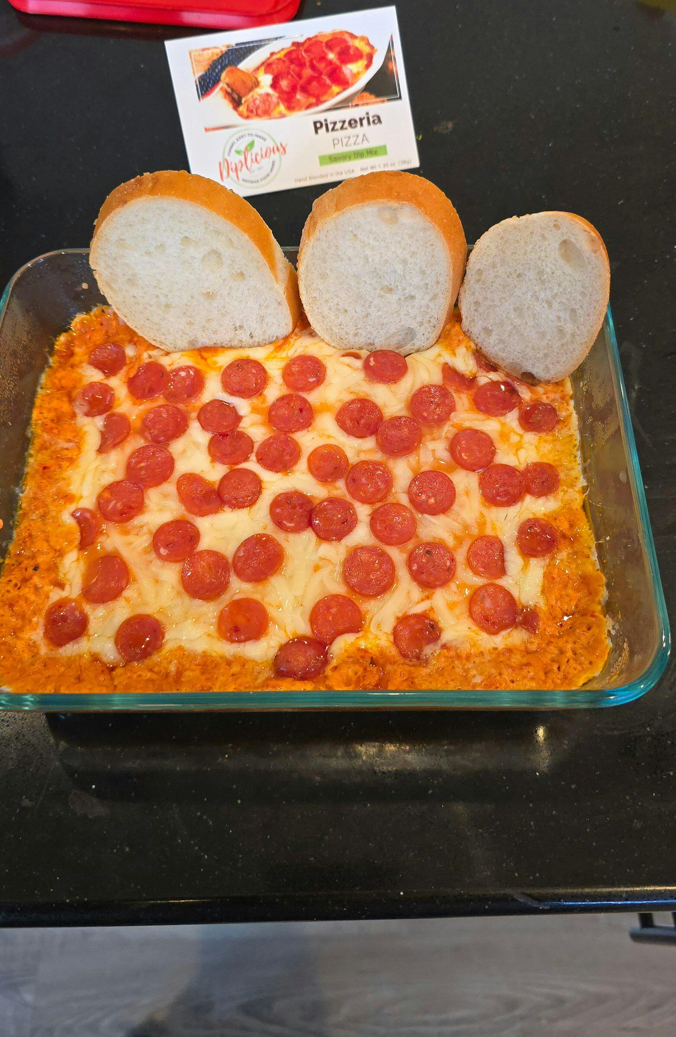 The yummy flavor of pizza in a dip. Bursting with romano cheese, tomato, herbs and spices, this dip will remind you of your favorite pizzeria.